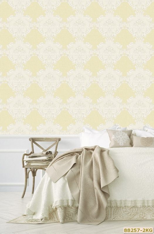 Họa tiết được in dập nổi trên nền giấy dán tường đem đến cho không gian sự sang trọng quý phái